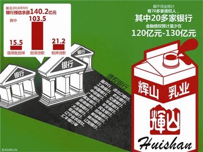 越来越多的债权人公布了辉山乳业的债权金额。平安银行、九台农商银行、招商银行、农业银行、交通银行相继披露了其对辉山乳业的风险敞口。辉山乳业危机爆发之后,一份23家债权银行名单震惊了金融界。随后,P2P红岭创投也被曝卷入其中,而诺亚财富旗下资产管理公司歌斐资产则向香港高等法院申请查封辉山乳业。除了银行,辉山乳业的融资渠道还包括地方金融资产交易所、融资租赁企业和网络借贷平台等。据估计,辉山乳业有70多家债权人,其中23家银行、十几家融资租赁公司,金融债权预计至少在120亿元-130亿元。辉山乳业的债务危机还在持续,而各方债权人的博弈也刚刚开始。