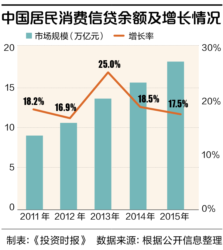 2016 年,对消费金融行业而言,是大爆发之年,随着70后、80后、90后的年轻消费者对消费贷产品的接受程度快速与国际接轨,有测算数据显示,2016年中国消费金融交易规模不经意间已达5万亿元。且以中国的人口基数和增长消费需求计,我国消费信贷仍有很大的上升空间,未来几年将形成一个十万亿级的市场。