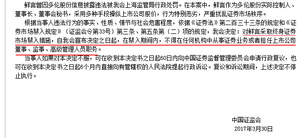 中国证监会市场禁入决定书(鲜言)