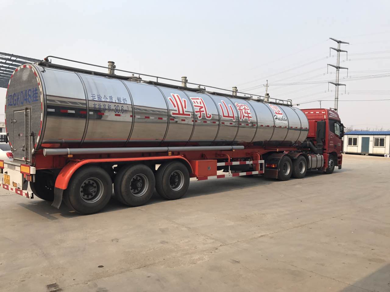 辽宁辉山乳业集团(沈阳)有限公司的货车仍在正常运送液态鲜奶(第一财经记者王进摄,下同)