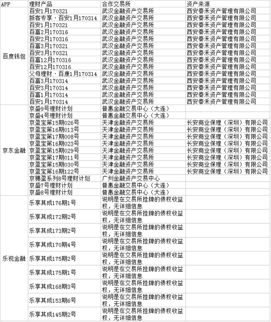 转载请标注:信息网——高风险?百度京东乐视疑似问题理财产品(附表