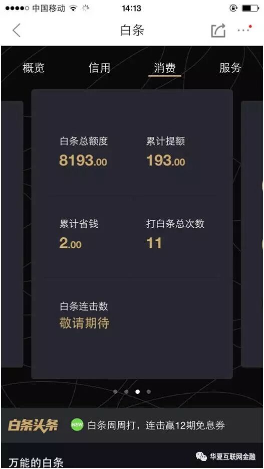 据零壹财经研究院数据,京东消费金融版块的白条、金条预计2016年累计成交1000亿元,这个庞大的数字背后正是来自于无数用户的每次购物消费。