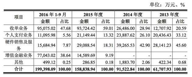 2013年至2016年1-9月,拉卡拉支付公司的个人支付收入分别为2.04亿元、2.39亿元、2.11亿元、1.11亿元,报告期收入规模逐年提升的同时个人支付业务占公司整体收入的比例也由2013年的33.12%下降到2016年1-9月的5.56%,即个人支付业务占公司整体业务已相对较小。