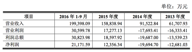 利润表数据纵观拉卡拉支付整体业绩,公司2016年1至9月营收约为19.94亿元,净利润为2.12亿元;2013年至2015年,全年营收分别为6.17亿元、9.15亿元、15.88亿元,净利润分别为-1.27亿元、-1.97亿元、1.24亿元。
