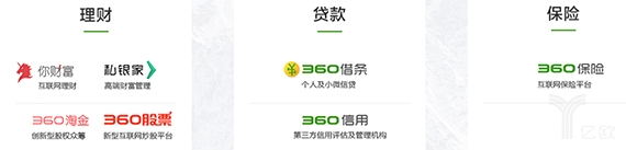360金融集团副总裁卢德夫向亿欧介绍:目前360金融集团旗下包括理财产品“你财富”、高端理财师“私银家”、股权众筹平台“360淘金”、互联网炒股平台“360股票”、个人及小微信贷产品“360借条”、第三方信用评估及管理机构“360信用”以及互联网保险平台“360保险”。