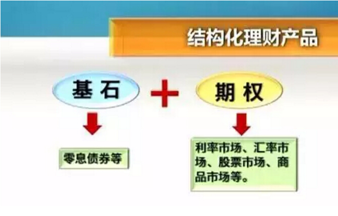 那么,结构性理财产品的结构设计究竟是怎样的呢?上述产品开发部门高管“庖丁解牛”,他分析称,目前银行最常见“结构化产品”的产品结构,基本由两部分组成,一部分是风险控制的“基石”,一部分是争取收益的“期权”。两者的占比分配取决于该产品对收益的预期以及对风险的承受程度。