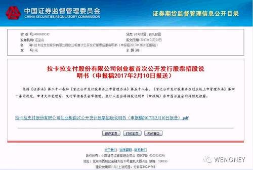 对于此次拉卡拉能否成功IPO,证监会发审委审核是否通过,凤凰WEMONEY将持续跟踪报道。