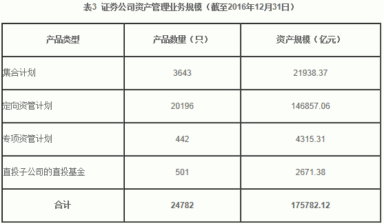 据基金业协会数据,截至2016年底,证券公司主要资产管理业务受托资金规模为17.31万亿元,较2015年底的11.84万亿元增长46.25%。