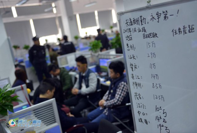 据办案民警称,这个公司是一个资产管理公司,专门负责去追收一些不良资产,但是就是说聘请的业务员就不择手段,通过一些非法手段,去获取一些公民的信息,然后就通过他们这些手段,达到找到他们债务人的目的。进入现场之后,里面的员工正在忙碌着为人追债。墙上的白板上写着每名员工追债的业绩,有的桌上还放着催债话术和一些公民信息。