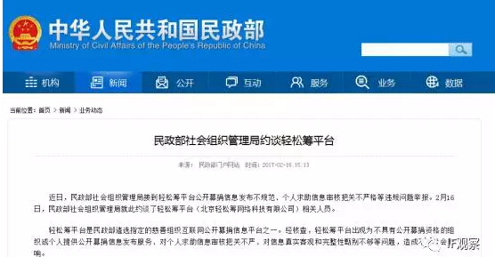 转载请标注:信息网——轻松筹违规被要求整改 盘点13家互联网募捐平台
