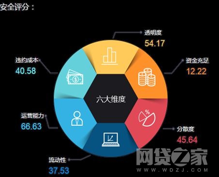 中频数据主要有六大维度:违约成本、运营能力、资本充足、透明度(含部分合规指标)、流动性、分散度。违约成本从平台自身的背景实力出发,判断平台诈骗风险和基本实力。运营能力从平台的交易数据、坏账,并综合考虑线下理财端的影响,测算平台运营的稳健性。资本充足测量平台运用自有资金覆盖逾期风险的能力。透明度考察平台的透明度水平,并将逐步升级为合规指标,该指标是平台信息透明情况的集中体现,未来将包含全部合规指标,是一个平台走向合规和稳定的外化参考标准。流动性侧重于衡量平台借款期限长短,资产变现的难度,资金流动性越低,平台越安全。分散度考察平台的借款人和投资人的待还金额的分散程度。风险预警系统会根据以上六大维度通过数据分析、模型反馈获得平台的安全评级分,量化评估网贷平台的安全指数。