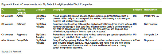 所以,并不奇怪大数据分析会吸引大量投资。根据花旗的统计预测,金融领域的大数据和AI创新单位在接下来几年还将获得更多的投资。