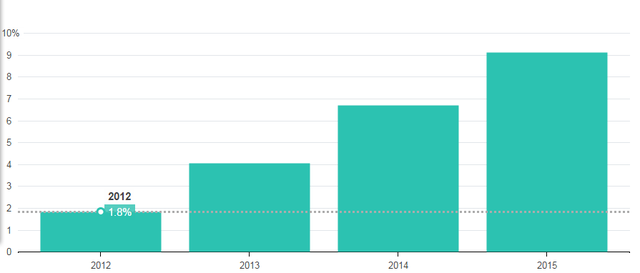 自2012年以来,中国互联网财产和意外保险销售额已增长了四倍多。