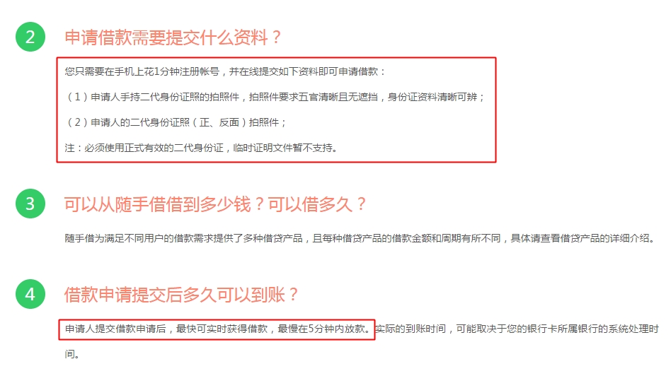 据柒闻网不完全了解,互联网金融平台提供闪电借贷产品多种多样。有平台宣称,“最快可实现一分钟内放款,身份证银行卡手机上传联系人,便可借款。”,也有平台宣称,“2分钟快速审核,闪电借钱!无抵押身份证信用借款,有身份证就能借!”、“只需身份证和社保卡照片即可轻松在手机上借取现金”、“申请人只需提交手持二代身份证照的拍照件和身份证正反面拍照件即可申请借款,最快可实时获得借款,最慢在5分钟内放款。”