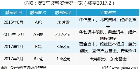 截至目前,第1车贷B轮及B+轮阶段总融资额达到5亿元。