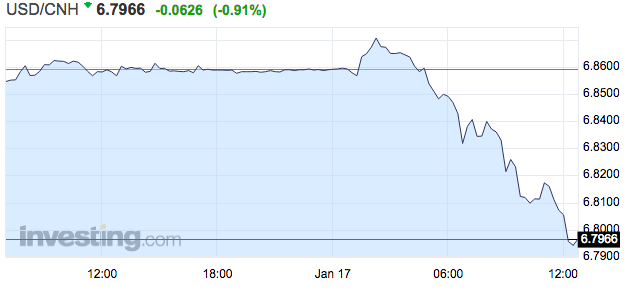 截至1月16日,离岸人民币对美元涨破6.80,日内已连破6.85、6.84、6.83、6.82、6.81、6.80六大关口。