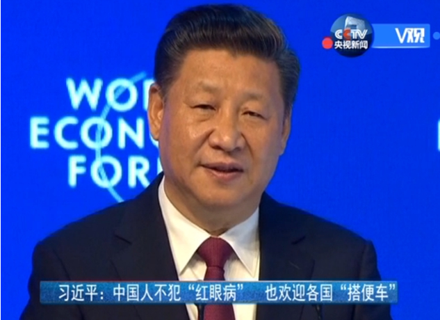 习近平在世界经济论坛上发表主旨演讲(央视直播截屏)