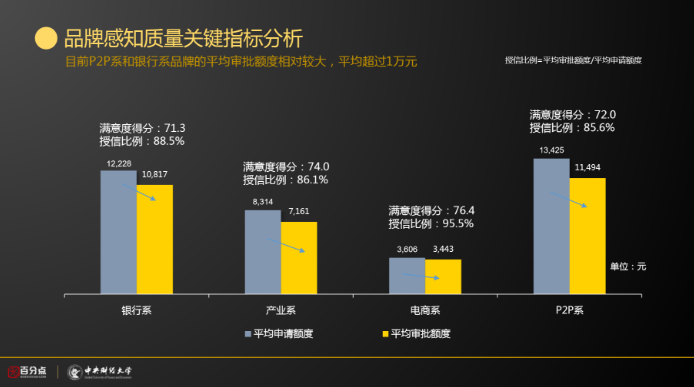 真相四:P2P系和银行系的平均审批额度超过1万元,电商系的平均审批额度为3443元
