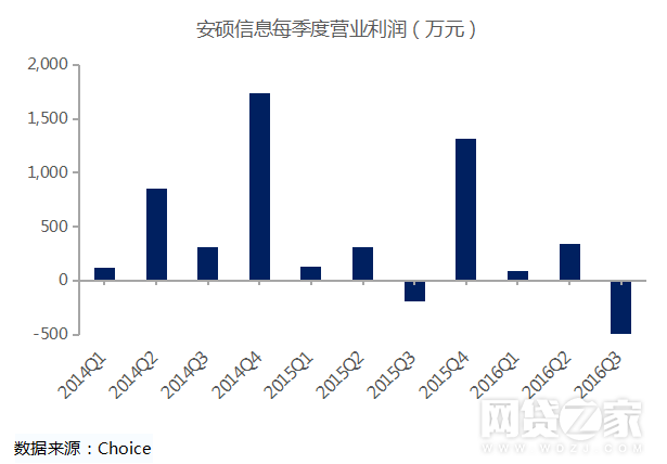 而安硕上市后的业绩呈逐年下降的趋势,15年的净利润相比14年下降将近50%,今年三季度营业利润甚至亏损500多万元。然而在中国的股市当中,股价表现与业绩下滑关系不大,关键是你会不会编栩栩如生的故事、画五颜六色的大饼、交形形色色的机构。