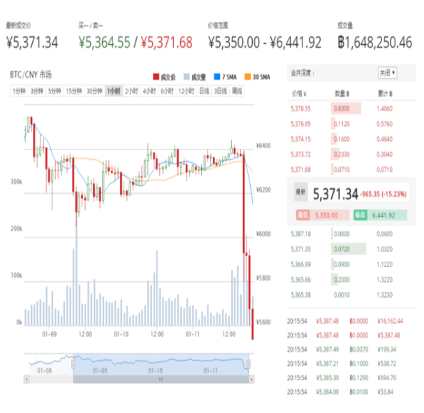 网络整理 2021-03-22 23:07受央行检查组今日先后进驻比特币交易平台核查影响,比特币跌幅进一步扩大,跌穿5400元关口。比特币中国报价最低至5380元人民币,日内大跌近15%(下图行情来自比特币中国)。以美元计价的比特币最低至816.3美元,日内跌逾10%。