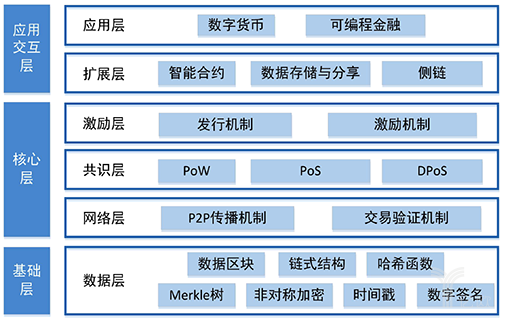在应用层面,《贵阳区块链发展和应用》显示,围绕数字经济、互联网治理和大数据发展中的价值实现,区块链规划的应用场景分为政用、民用、商用3类,包括应用层、合约层、激励层、共识层、数据层、网络层6个层次。
