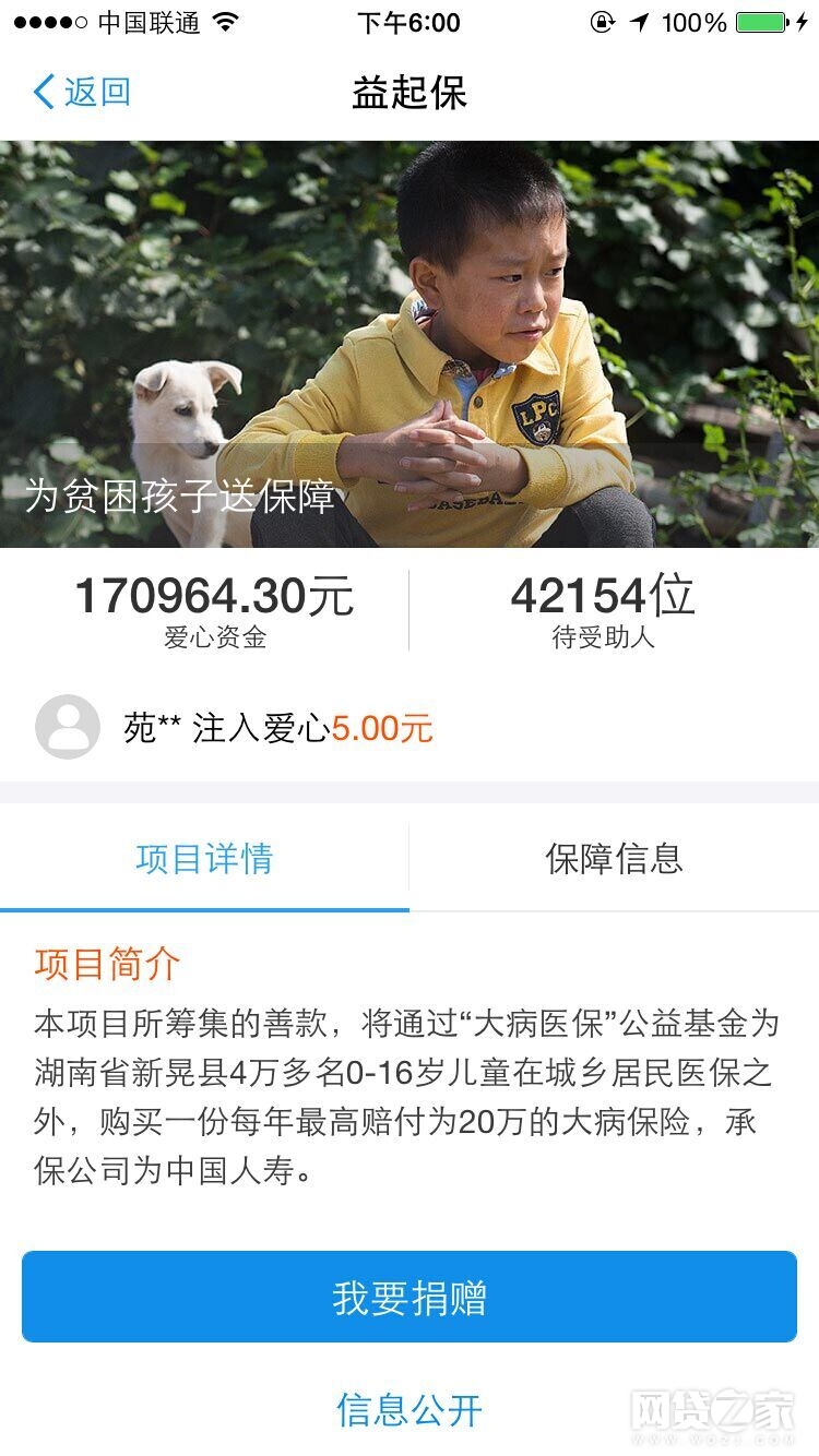 网友通过支付宝内的公益、保险两个频道或者淘宝公益,进行捐赠后,“大病医保“公益基金就会将募集的善款用于儿童大病医保的投保,免费赠送给新晃县4万多名0-16岁的孩子,承保的保险公司为中国人寿。