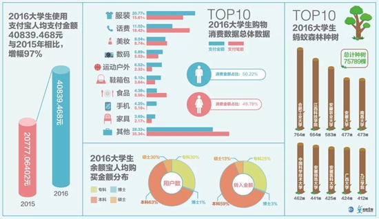 转载请标注:信息网——2016大学生支付宝人均支付4万 服装占比超20%