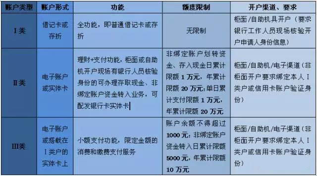 1、2016年12月1日起,同一个人在同一家银行(以法人为单位)只能开立一个Ⅰ类户,已开立Ⅰ类户,再新开户的,应当开立Ⅱ类户或Ⅲ类户。银行应于2016年11月30日前对同一存款人开户数量较多的情况进行摸排清理,采取账户降级或予销户处理。