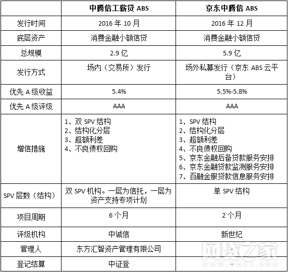 此次京东金融与中腾信ABS的合作中,京东金融一方不但负责ABS结构设计及发行工作,而且是基础资产形成阶段的资金方。京东金融将出资5亿元认购结构化信托优先级,用于向中腾信推荐的工薪阶层借款人发放小额消费金融借款,形成ABS入池基础资产,并在交易完成后持有部分夹层级信托受益权的交易形式为京东中腾信ABS提供了增信措施。