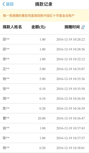 据介绍,“和再障说分手”项目页面上,用户点击“爱心传递记录”已经可以查看善款流向。上面记录着“2016年12月11日项目上线”,目前“筹款中”,且在“捐款记录”一项里,所有捐款人经隐私处理后的捐款时间和金额一目了然,募款结束后,拨付时间和每一位受益人收到款项的时间也将一一公示。