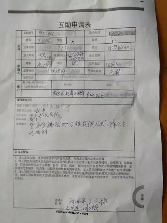这家成立于今年5月份的互助平台,终于在12月1号发布了首期互助公示,为期7天。即为“综合意外互助计划”的会员王女士募集20,000元互助金,根据调查公示,因其从不慎高处摔落,依《人身伤残评定标准》评定,其伤残程度为九级伤残(给付比例为10%;一级为最高,给付比例为100%;每级相差10%)。公示结束后,将从“综合意外互助计划”会员的账户余额中扣取互助金0.09元,捐赠给王女士。
