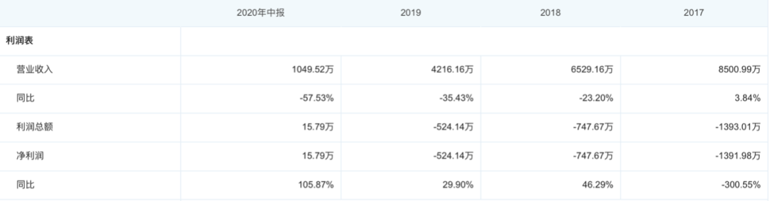 或许是因为宣传与实际体验存在巨大落差,在挂牌新三板后,希思医美的业绩持续下滑。根据其年报信息显示,2017年至2019年,希思医美营收一年不如一年,从2017年8500.99万下滑至2019年4216.16万,3年净利润累计亏损2663.79万元。