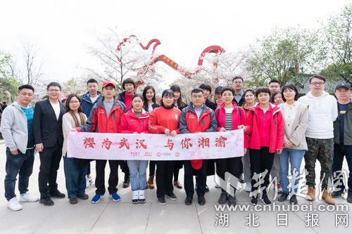 3月23日荆楚网(湖北日报网)联合湖南华声在线、重庆上游新闻和爱心企业无限极(中国)有限公司共同发起的“樱为武汉 与你湘渝”与援鄂医护相约武汉赏花活动走进东湖樱园,来自湖南、重庆两地的11名援鄂医疗队代表与3名武汉金银潭医护人员,驻足在樱花林中细细观赏、嬉笑拍照。