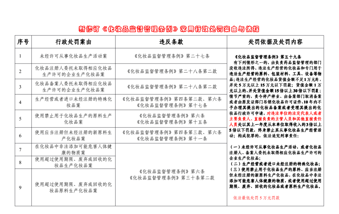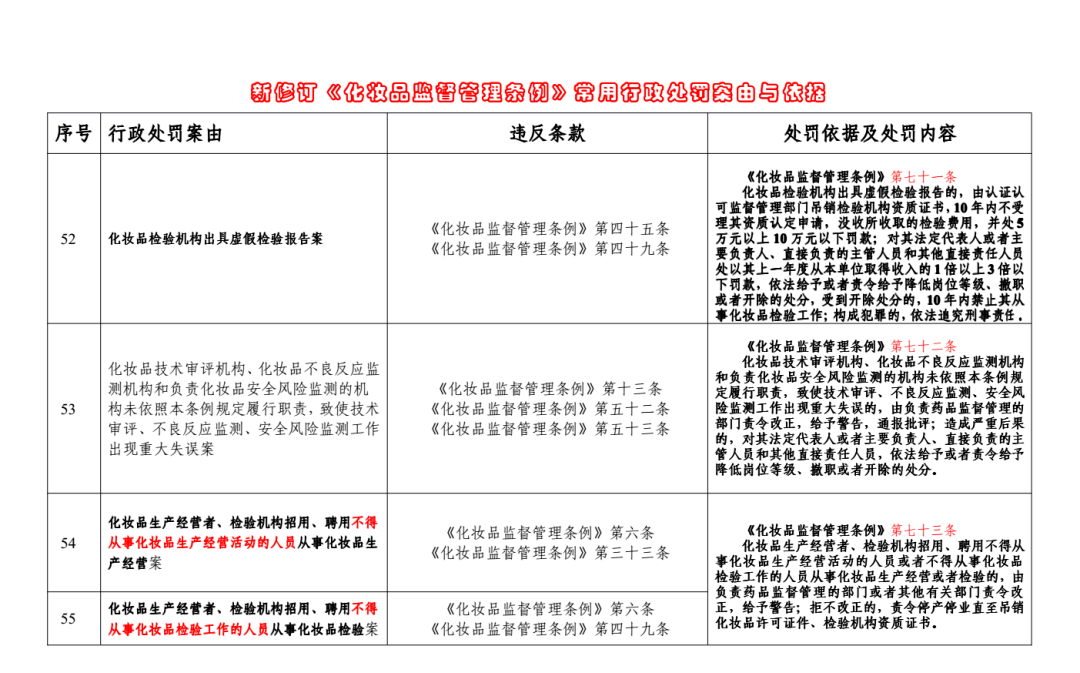 转载请标注:信息网——收藏!新修订《化妆品监督管理条例》55个处罚案