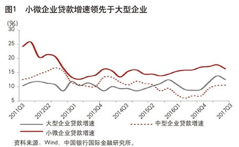 我国政府部门、监管机构近些年采取了很多措施,在解决中小企业融资问题方面取得了长足进展。2011~2017年,小型企业的贷款增速一直领先大型企业贷款增速,有些年份领先10个百分点以上(见图1)。2017年第四季度,我国小微企业贷款占贷款余额比重为25.9%,较2015年第一季度上升1.5个百分点。尽管取得进展,但中小企业融资困难仍反映出我国金融需求和金融供给的不协调。这既有市场发展的原因,也有中小企业发展的问题,同时还有市场失灵的问题。
