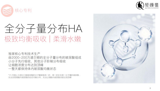 利用智能生物提取技术,提取高质量高纯度的全分子量HA,结构性质与人体接近,更易吸收。