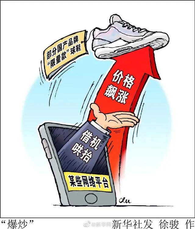 新华社发表评论称,近日,在微博、朋友圈和以虎扑为代表的一些网络论坛上,出现了国产品牌球鞋涨价和缺货的消息。李宁、安踏等国产品牌的有些“限量款”球鞋价格飙涨,其中某品牌一款球鞋的价格涨幅达31倍。如果因为“炒鞋”导致球鞋爱好者买不到想要的球鞋,进而让国产品牌失去消费者的信任,无异于竭泽而渔,自断国产品牌升级之路。