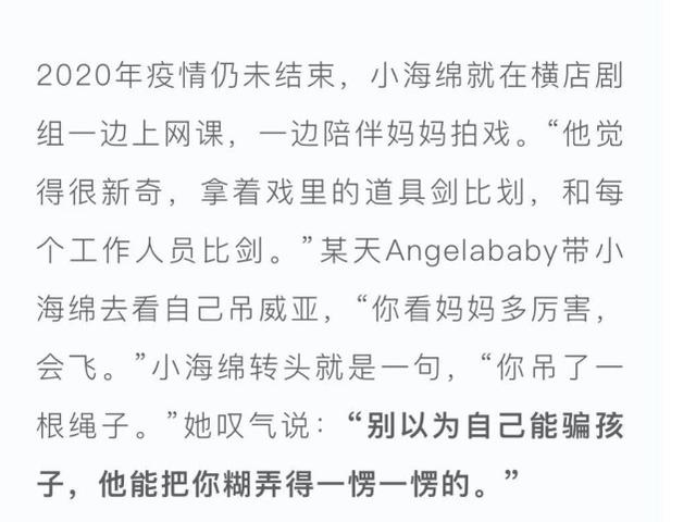 Baby透露,小海绵在横店上的是网课,当他完成了作业之后,就会在保姆的陪伴下,到片场找妈妈,而媒体也曾多次拍到小海绵现身的画面。