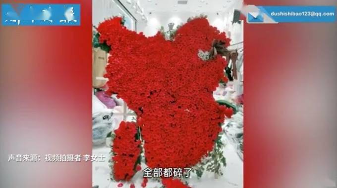 (原标题:“心”都碎了!送女友的巨型玫瑰心碎一地 ) 来源:北晚新视觉综合 中国新闻网