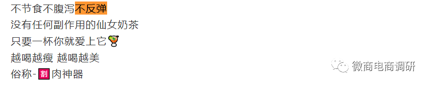 然而,在微博等平台、以及部分经销商的朋友圈中,表明有关产品具有减肥功效、或者表明相关产品的成分具有减肥功效的图片材料却是层出不穷,让人目不暇接。