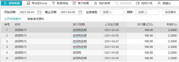 网络整理 2021-04-13 23:59(原标题:央行开展100亿元逆回购 机构:短期内资金面易紧难松)