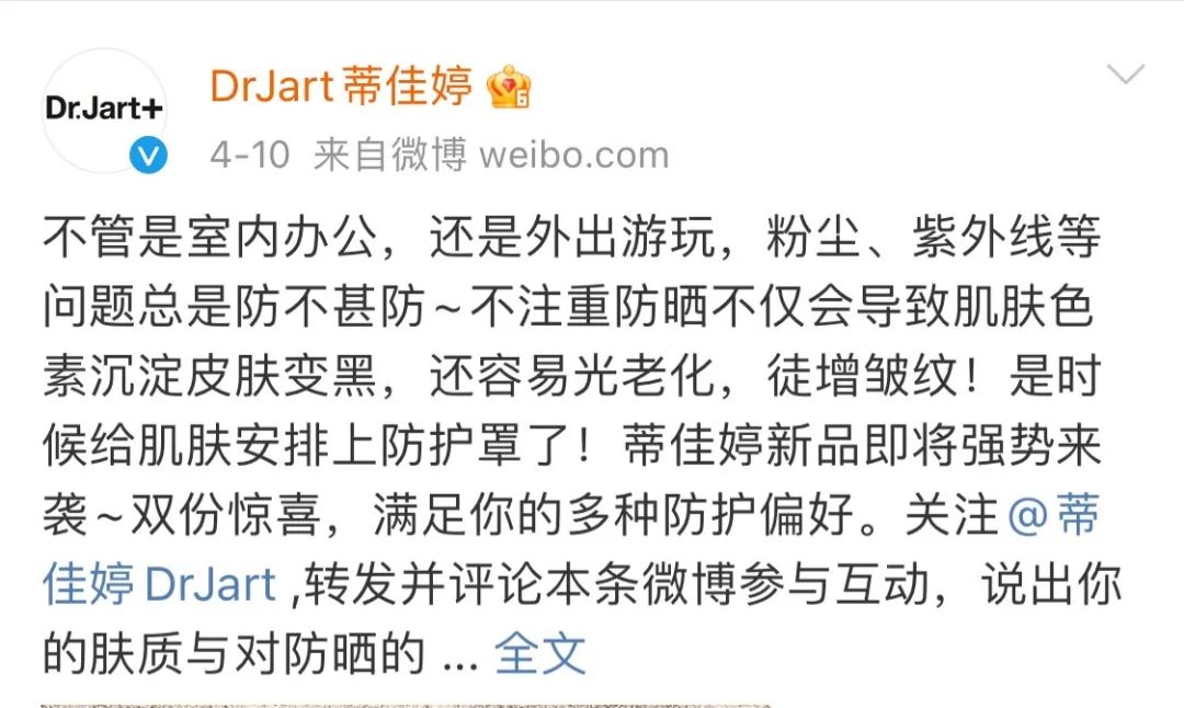 美商社注意到,4月10日当天,蒂佳婷品牌官方微博账号还曾发布一条与“防晒”话题相关内容。