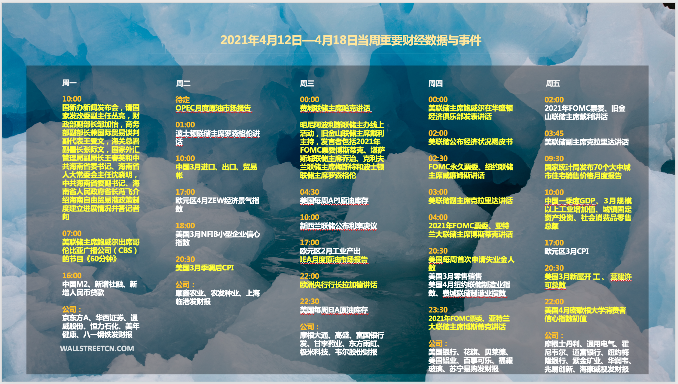网络整理 2021-04-15 08:14(原标题:下周重磅日程:中国GDP等经济数据,美联储主席两次讲话,博鳌论坛,华尔街财报)