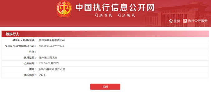 捷信2020年已三次被法院列为被执行人,最高执行标的超10万元