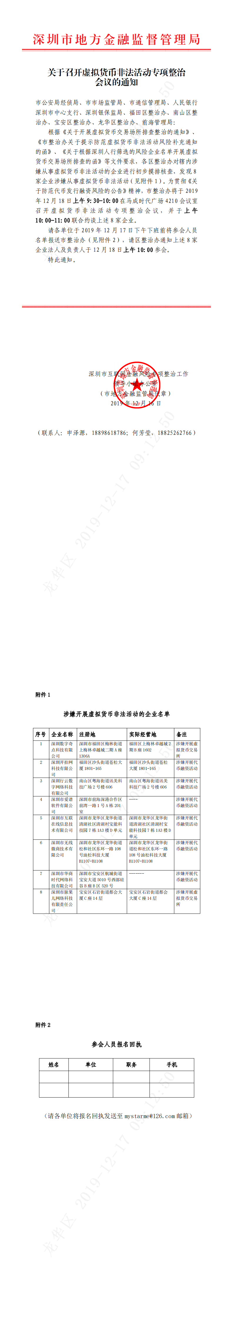 网络整理 2021-03-21 23:3112月16日,深圳市地方金融监督管理局下发《关于召开虚拟货币非法活动专项整治会议的通知》的文件。