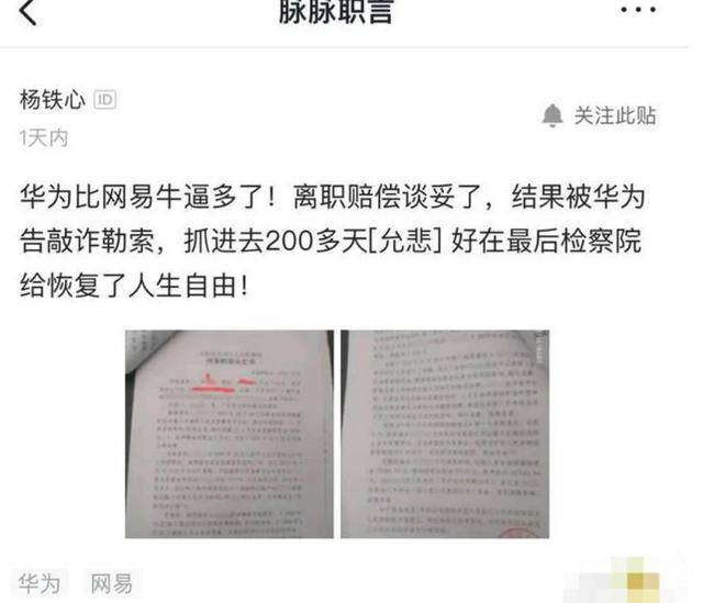华为13年工龄员工离职被起诉敲诈 羁押长达251天