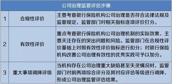 公司治理监管评估包括合规性评价、有效性评价、重大事项调降评级三个步骤。
